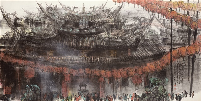 [北港朝天宮]是江明賢完成於1997年的作品,目前收藏在台北市立美術館.