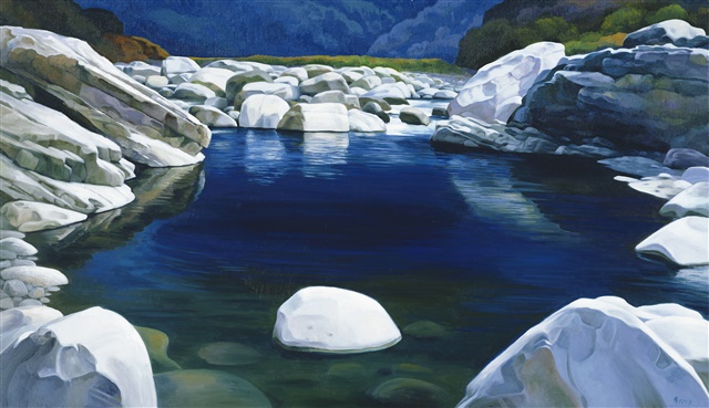 [溪]是不久前過世的藝術家林惺嶽,完成於1993年的作品,目前收藏在台北市立美術館,是進入90年代後的台灣美術界中,少數幾件堅持寫實主義的作品之一.
