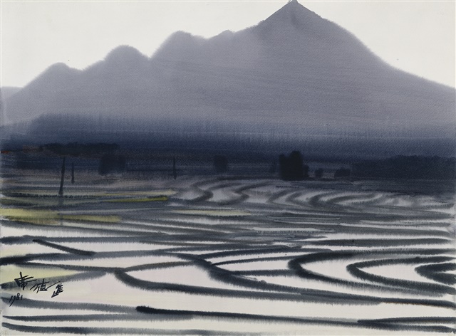中午吃過水果輕食點心後,我們大家各自散開,在附近自由活動,霎那間,一陣雲霧來到我的面前,我彷佛被壟罩住一樣,雖然暫時找不到路,但是我也樂在這件有如水墨畫作的雲霧中,雲霧氣氛讓我想起了席德進過世的那一年(1981)完成的[淡水梯田]以及[金瓜石山勢],藝術家運用生命最後的光輝,巧妙的透過水墨畫風格的水彩畫效果,讓這兩件作品在水墨的構圖中,也能呈現出水彩畫的質感.
