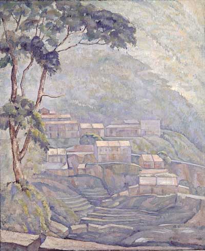 在素描的時候,我的思緒也忍不住想起了台灣畫家林克恭,筆下有一件作品也是類似的情境-「金礦,九份」。